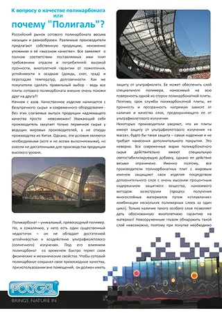 Преимущества монолитного поликарбоната от “Полигаль Восток”: